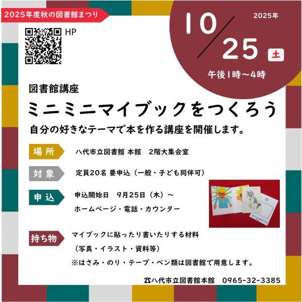 図書館講座「ミニミニマイブックをつくろう」を開催します。