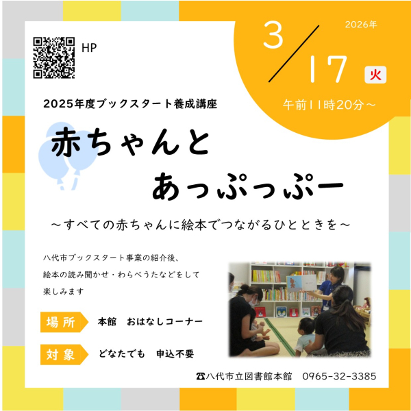 3月17日(火)開催【本館】2025年度ブックスタート養成講座「赤ちゃんとあっぷっぷー」