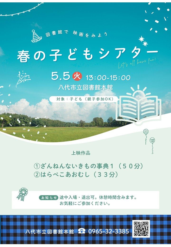 八代市立図書館本館にて、春の子どもシアターを開催します。
