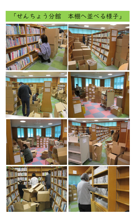 現在せんちょう分館では、倉庫・本館へ移動していた本を せんちょう分館へ戻す作業を行っています。