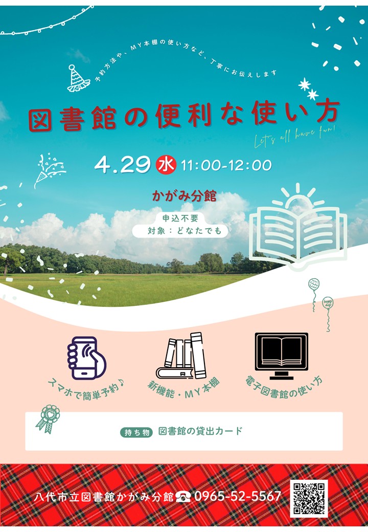 4月29日(水祝)開催【かがみ分館】図書館講座「図書館の便利な使い方」