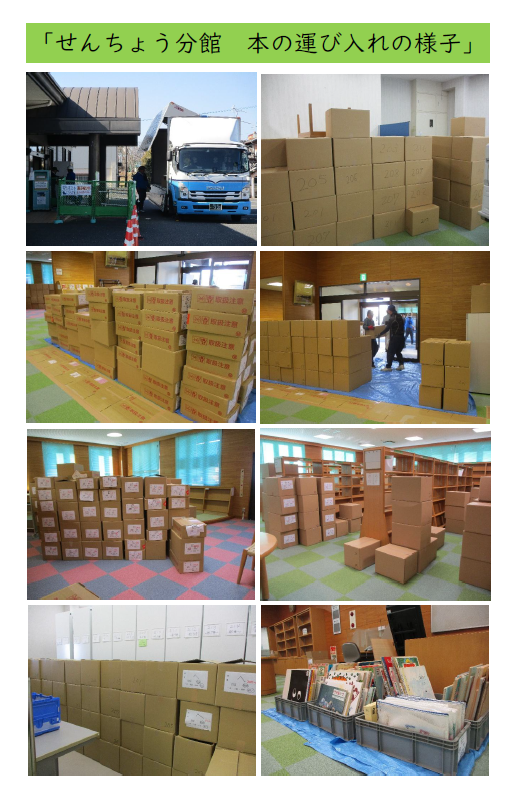 現在せんちょう分館では、倉庫・本館へ移動していた本を せんちょう分館へ戻す作業を行っています。